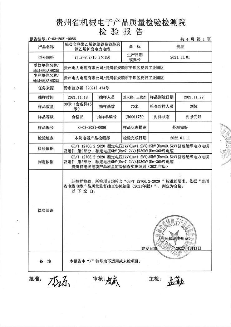 下一篇:鋁芯交聯(lián)聚乙烯絕緣架空電纜 檢驗(yàn)報(bào)告